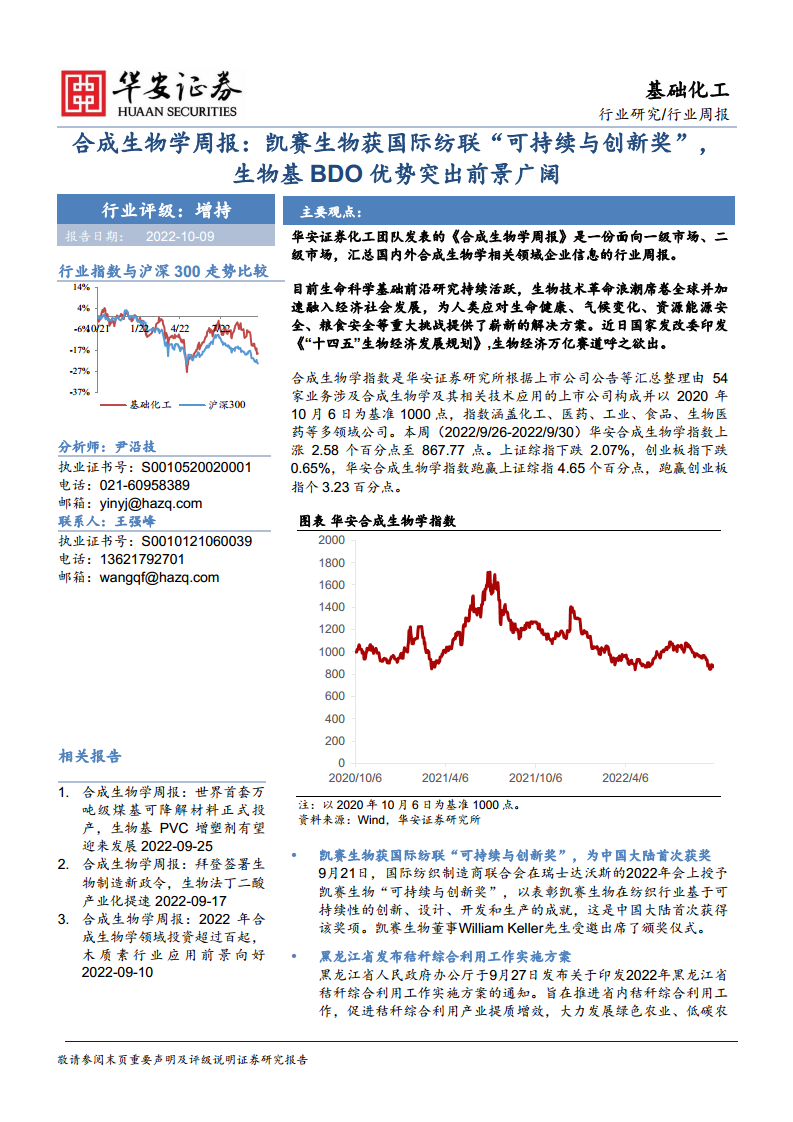 合成生物学周报:凯赛生物获国际纺联“可持续与创新奖”,生物基BDO优势突出前景广阔