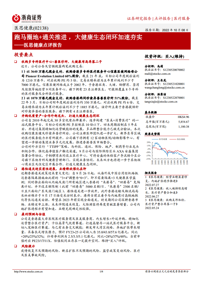医思健康(02138)点评报告:跑马圈地+通关推进,大健康生态闭环加速夯实