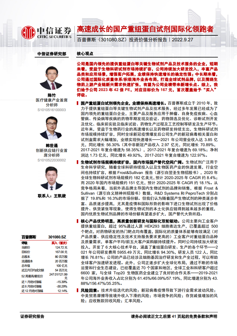 投资价值分析报告:高速成长的国产重组蛋白试剂国际化领跑者