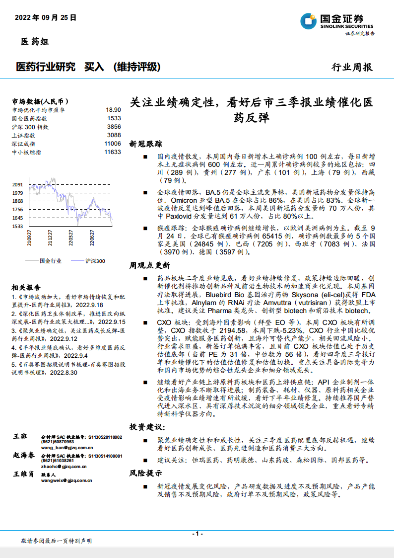 行业周报:关注业绩确定性,看好后市三季报业绩催化医药反弹