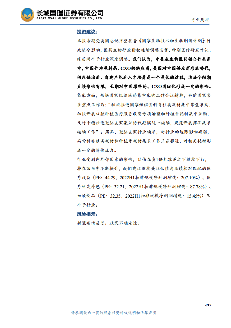 医药生物行业双周报2022年第19期总第68期:受拜登法令影响,行业深度调整