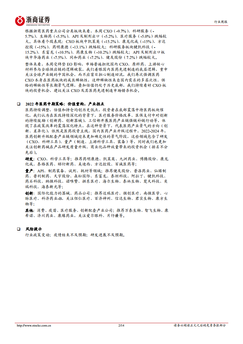 医药行业周报:关注CXO及医药先进制造市场错杀机会