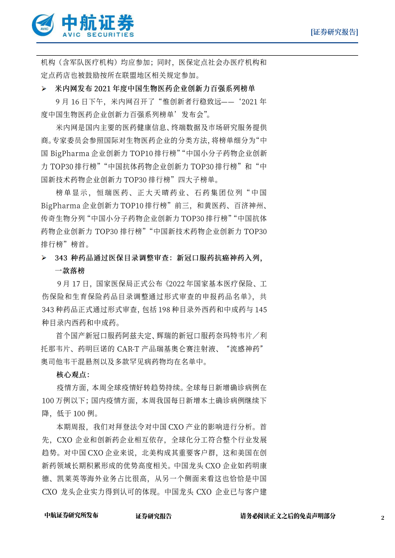 医药生物行业周报:拜登行政法令对中国CXO行业影响几何