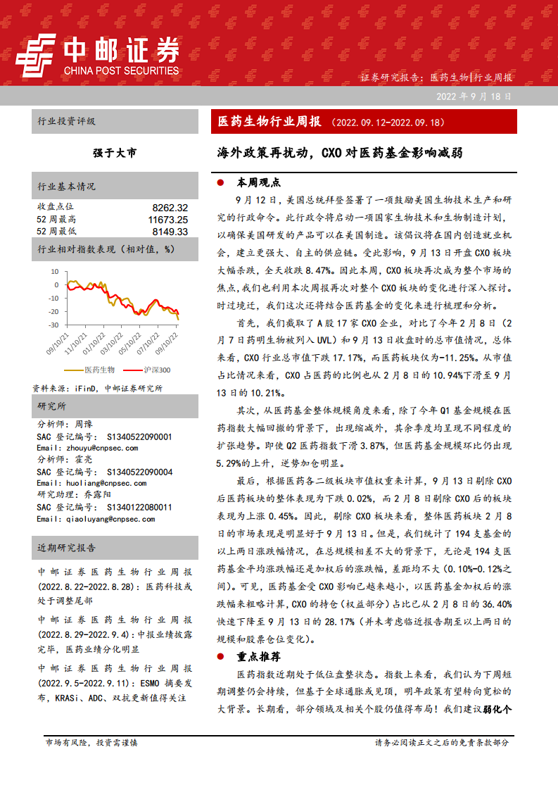 医药生物行业周报:海外政策再扰动,CXO对医药基金影响减弱