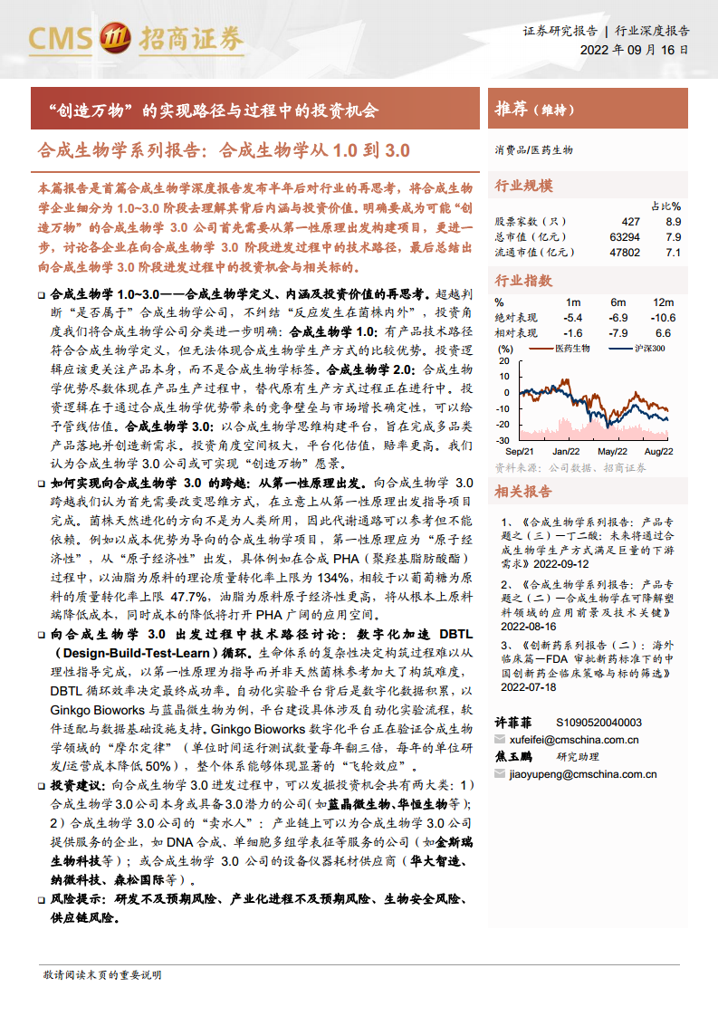 合成生物学系列报告:合成生物学从1.0到3.0,“创造万物”的实现路径与过程中的投资机会--20220921.pdf