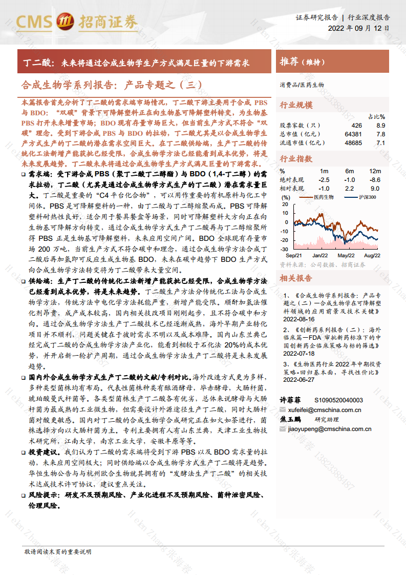 合成生物学系列报告:产品专题之(三)—丁二酸:未来将通过合成生物学生产方式满足巨量的下游需求