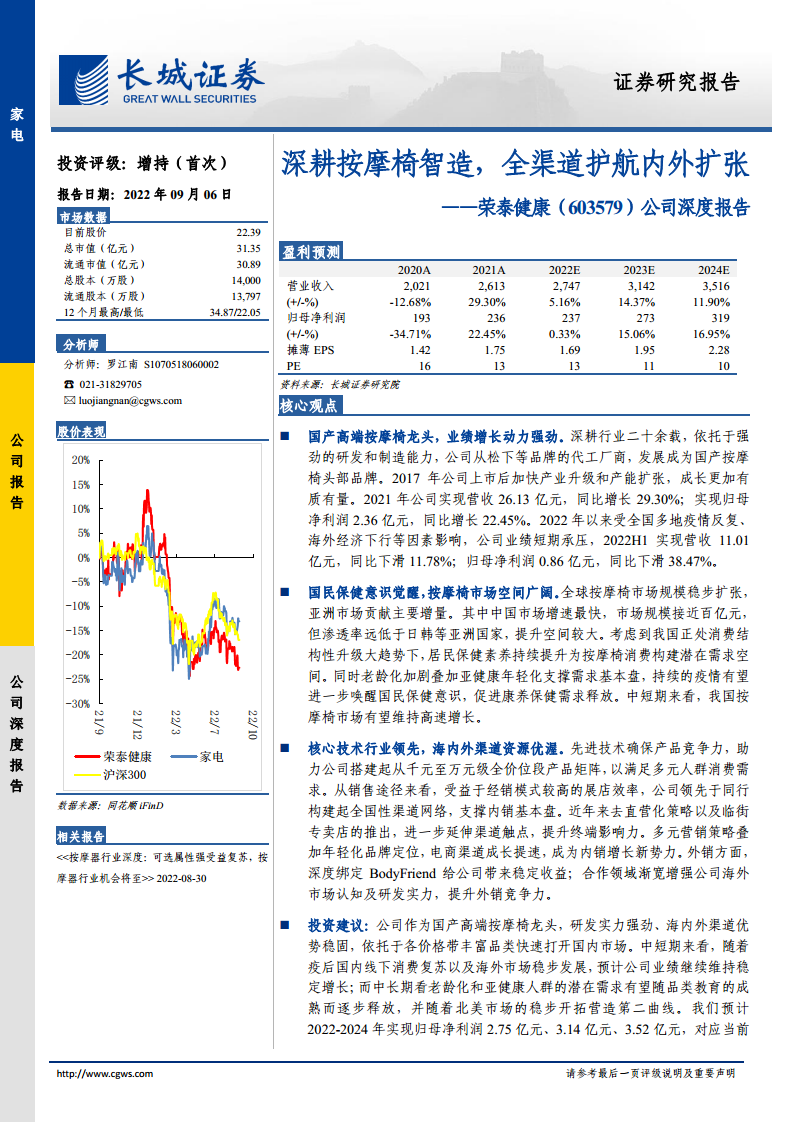 荣泰健康(603579)公司深度报告:深耕按摩椅智造,全渠道护航内外扩张