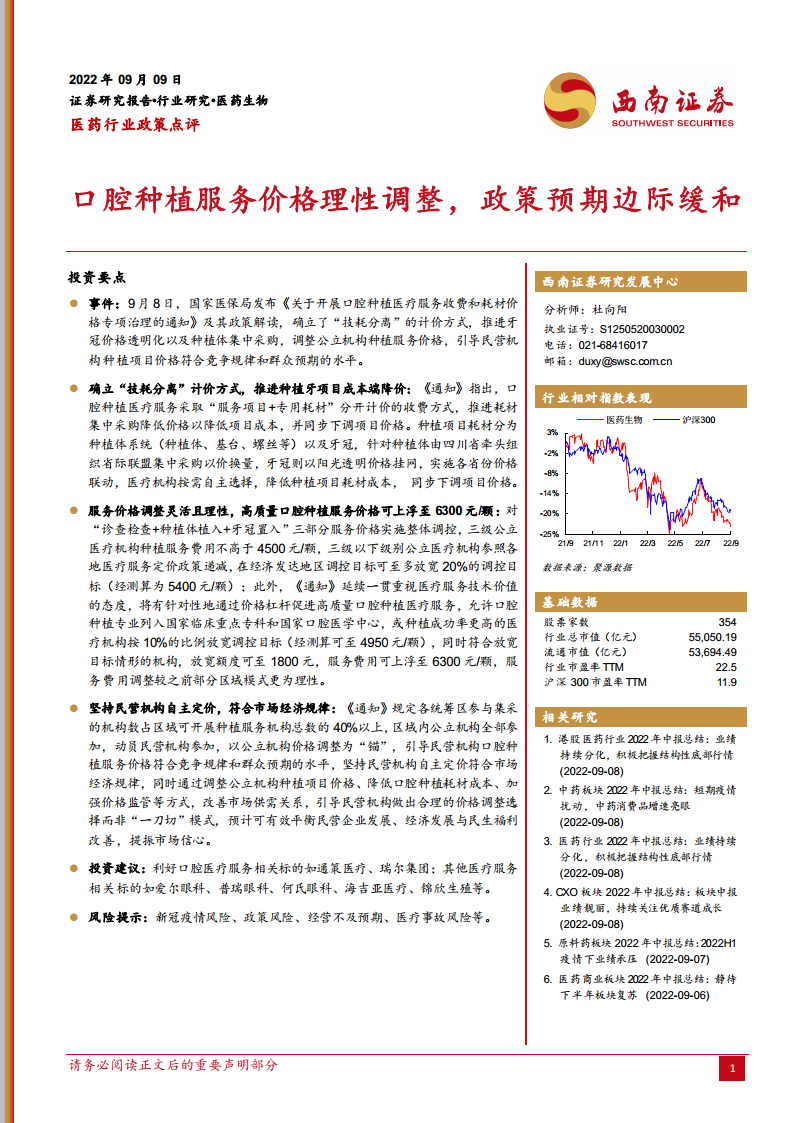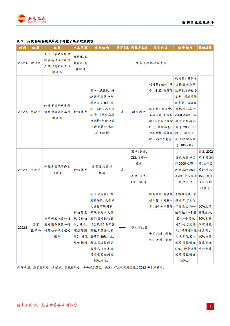 医药行业政策点评:口腔种植服务价格理性调整,政策预期边际缓和