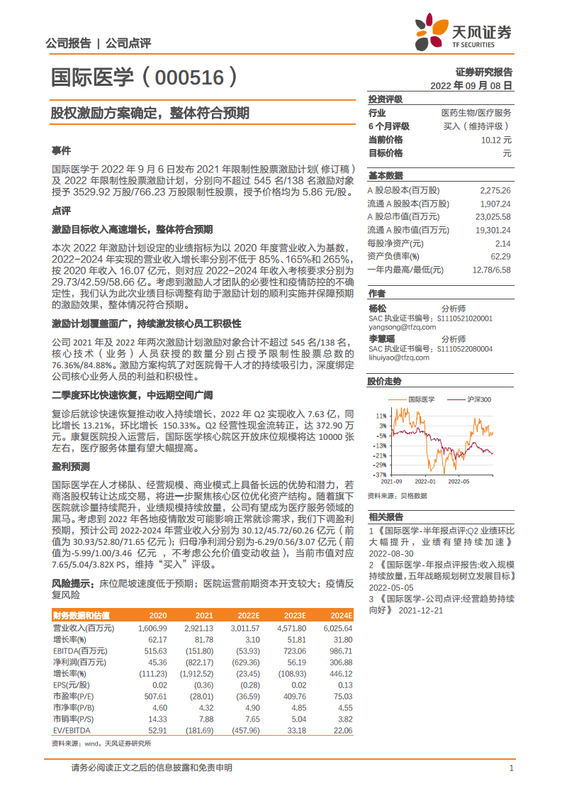国际医学(000516):股权激励方案确定,整体符合预期