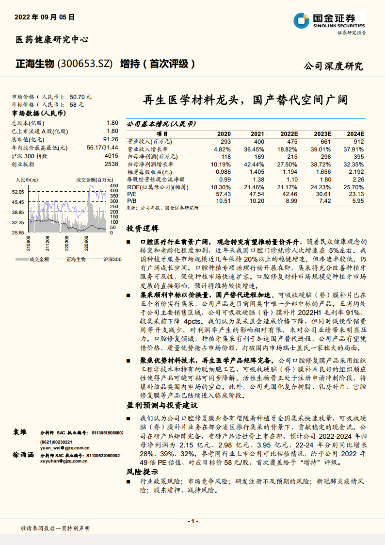 正海生物(300653):再生医学材料龙头,国产替代空间广阔