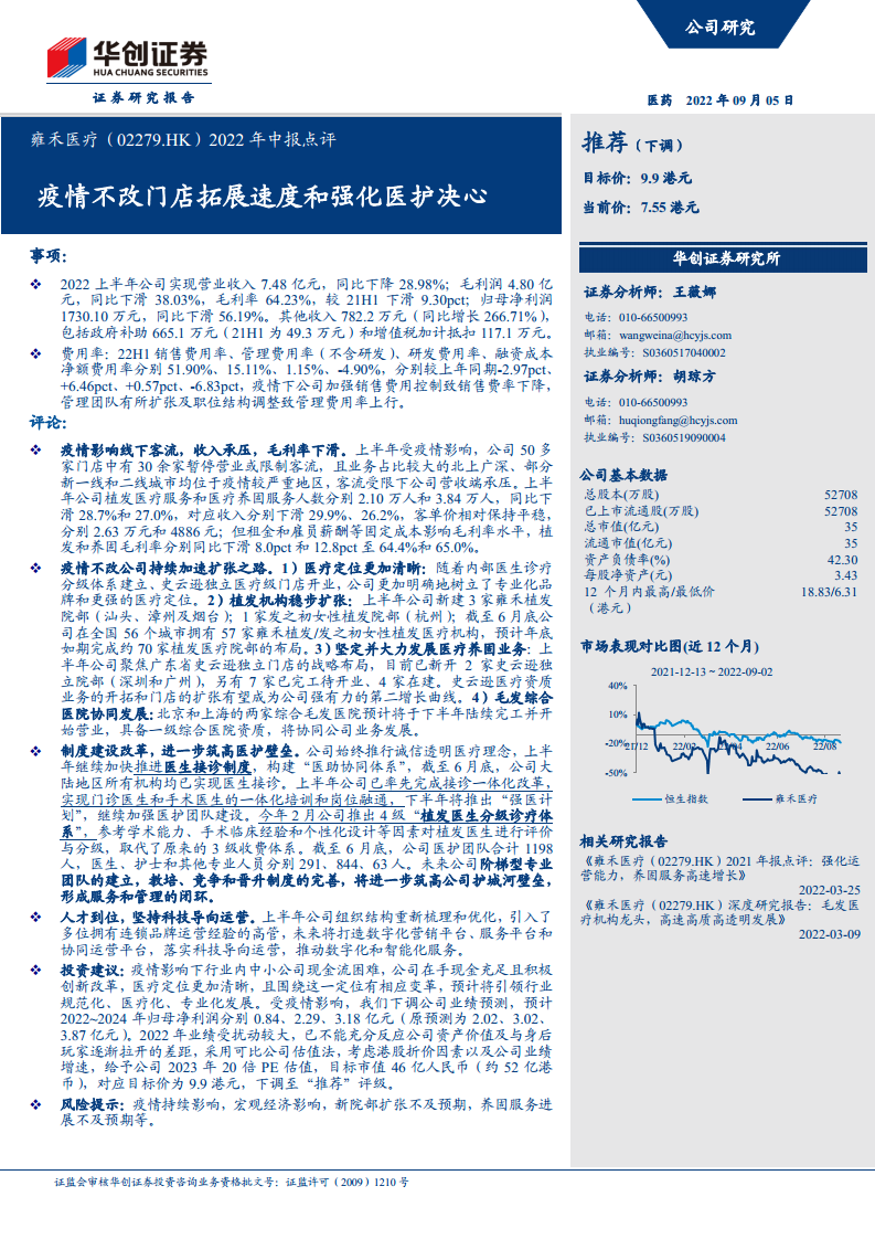 雍禾医疗(02279):疫情不改门店拓展速度和强化医护决心
