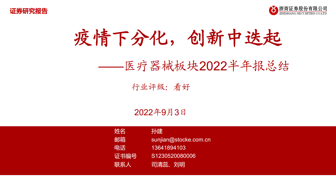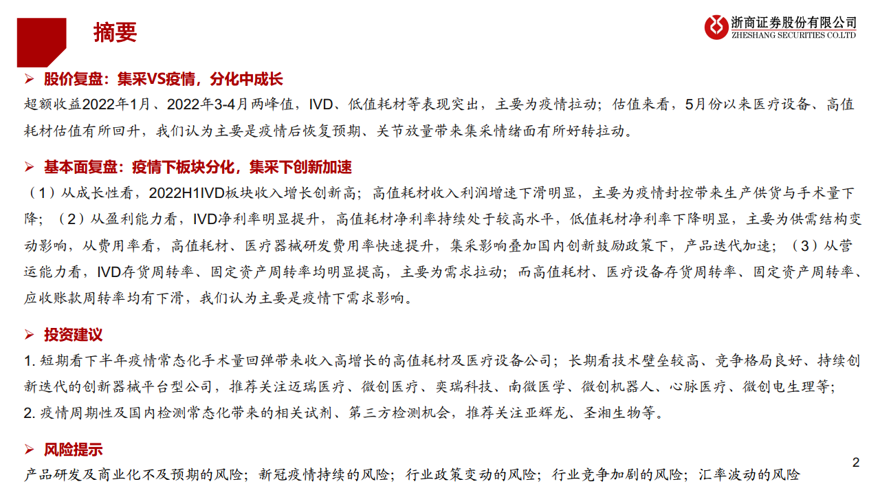 医疗器械板块2022半年报总结:疫情下分化,创新中迭起