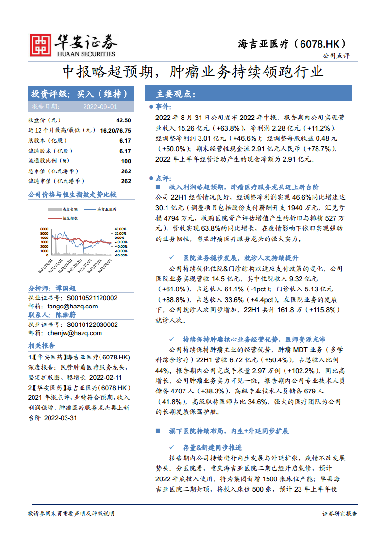 海吉亚医疗(06078):中报略超预期,肿瘤业务持续领跑行业