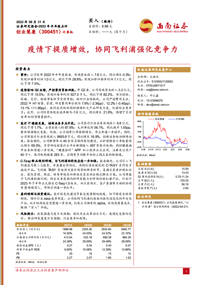 创业慧康(300451):疫情下提质增效,协同飞利浦强化竞争力