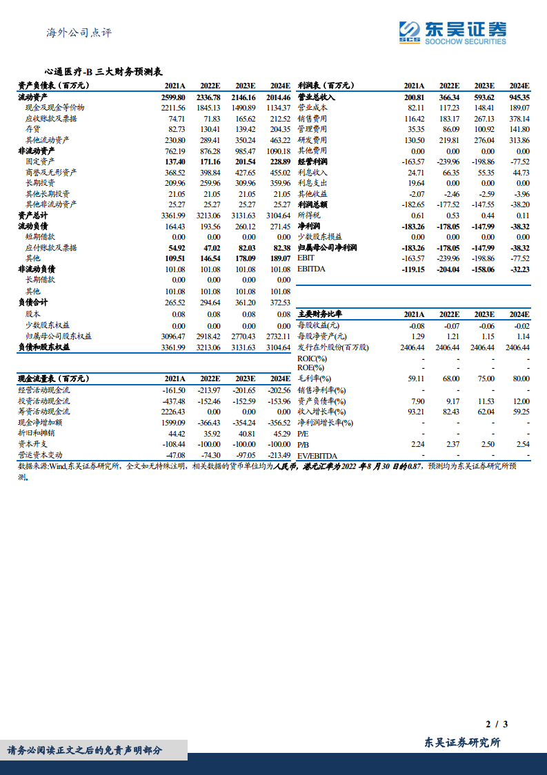心通医疗-B(02160)2022年半年度报告点评:疫情下公司稳健经营,在研管线丰富打造长期成长空间