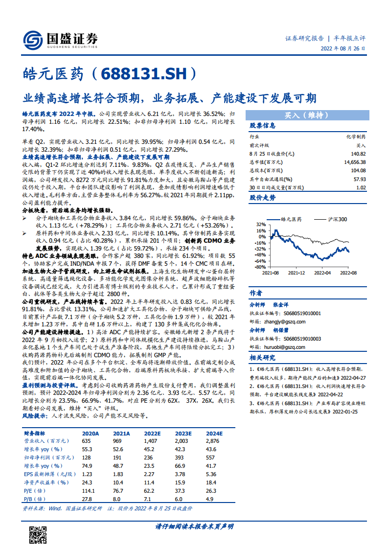 皓元医药(688131):业绩高速增长符合预期,业务拓展、产能建设下发展可期