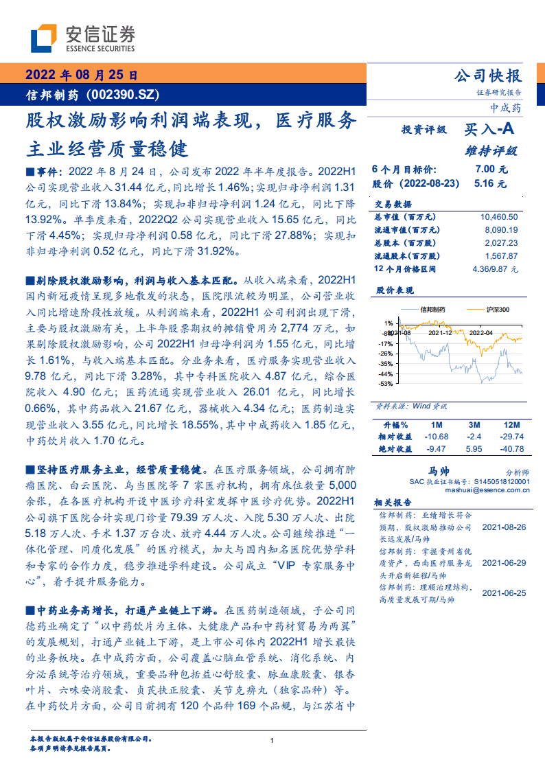 信邦制药(002390):股权激励影响利润端表现,医疗服务主业经营质量稳健