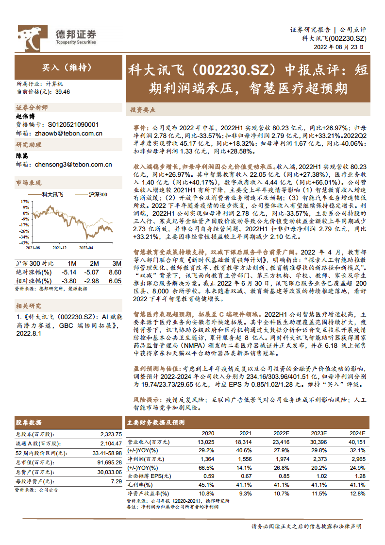 中报点评:短期利润端承压,智慧医疗超预期