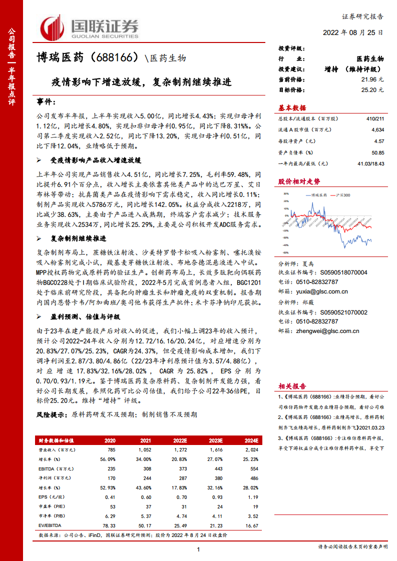 博瑞医药(688166):疫情影响下增速放缓,复杂制剂继续推进