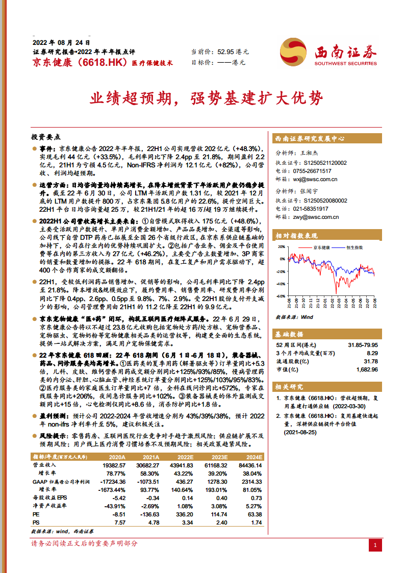 京东健康(06618):业绩超预期,强势基建扩大优势