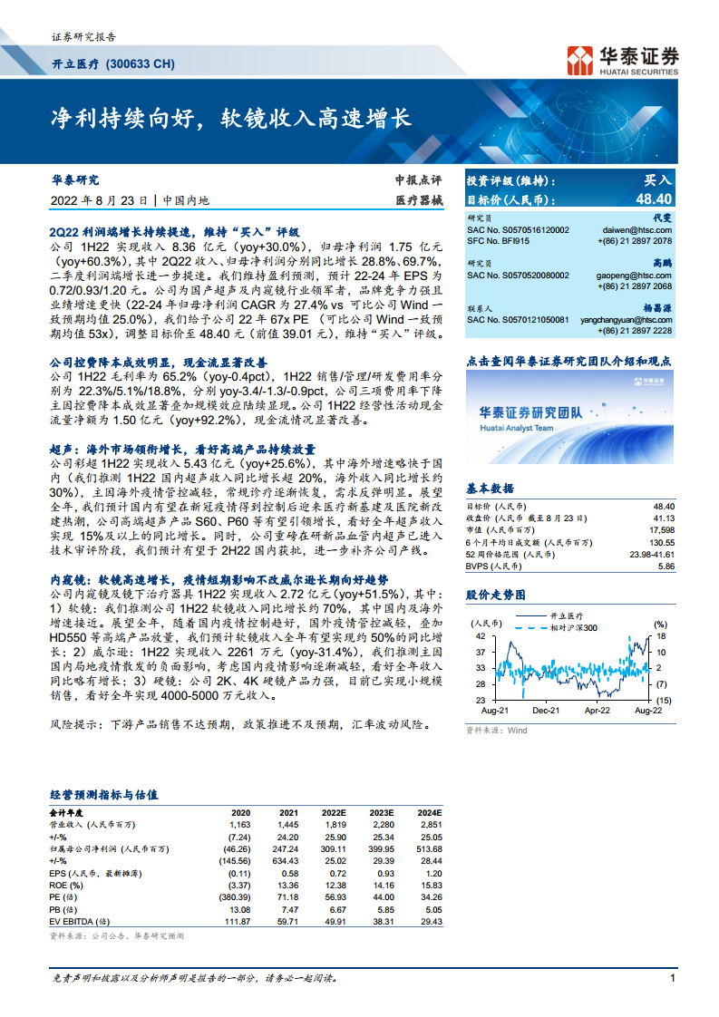 开立医疗(300633):净利持续向好,软镜收入高速增长