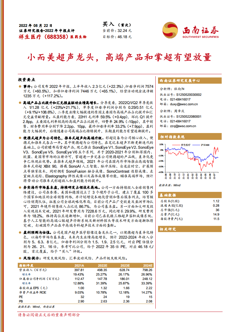 祥生医疗(688358):小而美超声龙头,高端产品和掌超有望放量