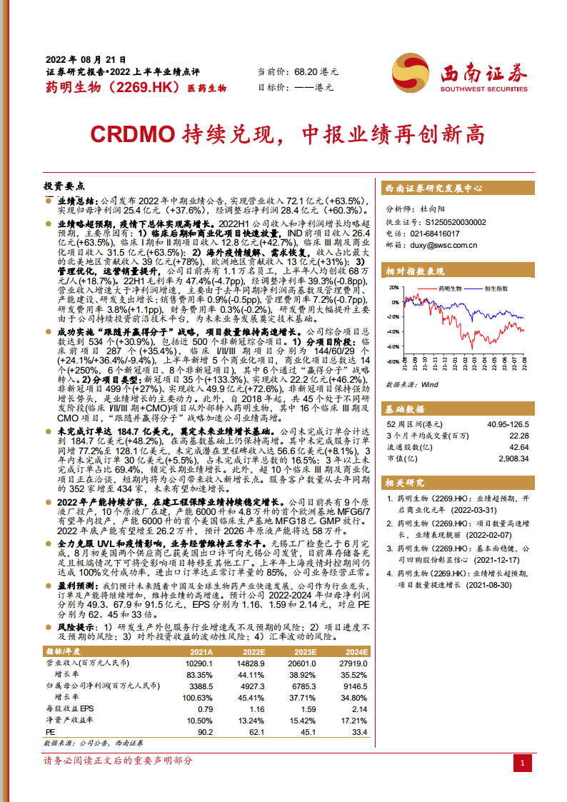 药明生物(02269):CRDMO持续兑现,中报业绩再创新高
