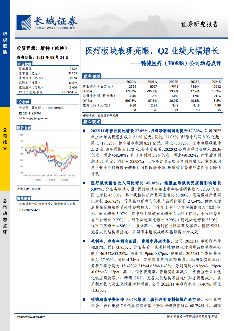 医疗板块表现亮眼,Q2业绩大幅增长——稳健医疗(300888)公司动态点评