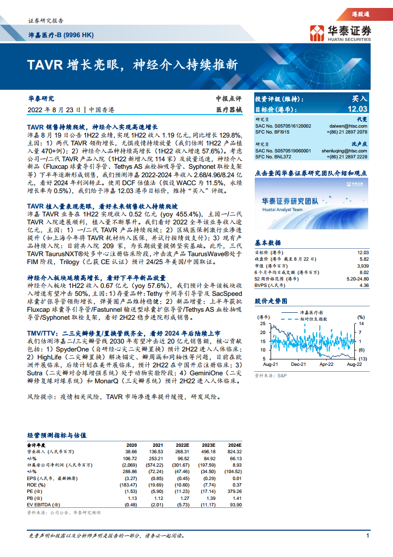 沛嘉医疗-B(09996):TAVR增长亮眼,神经介入持续推新