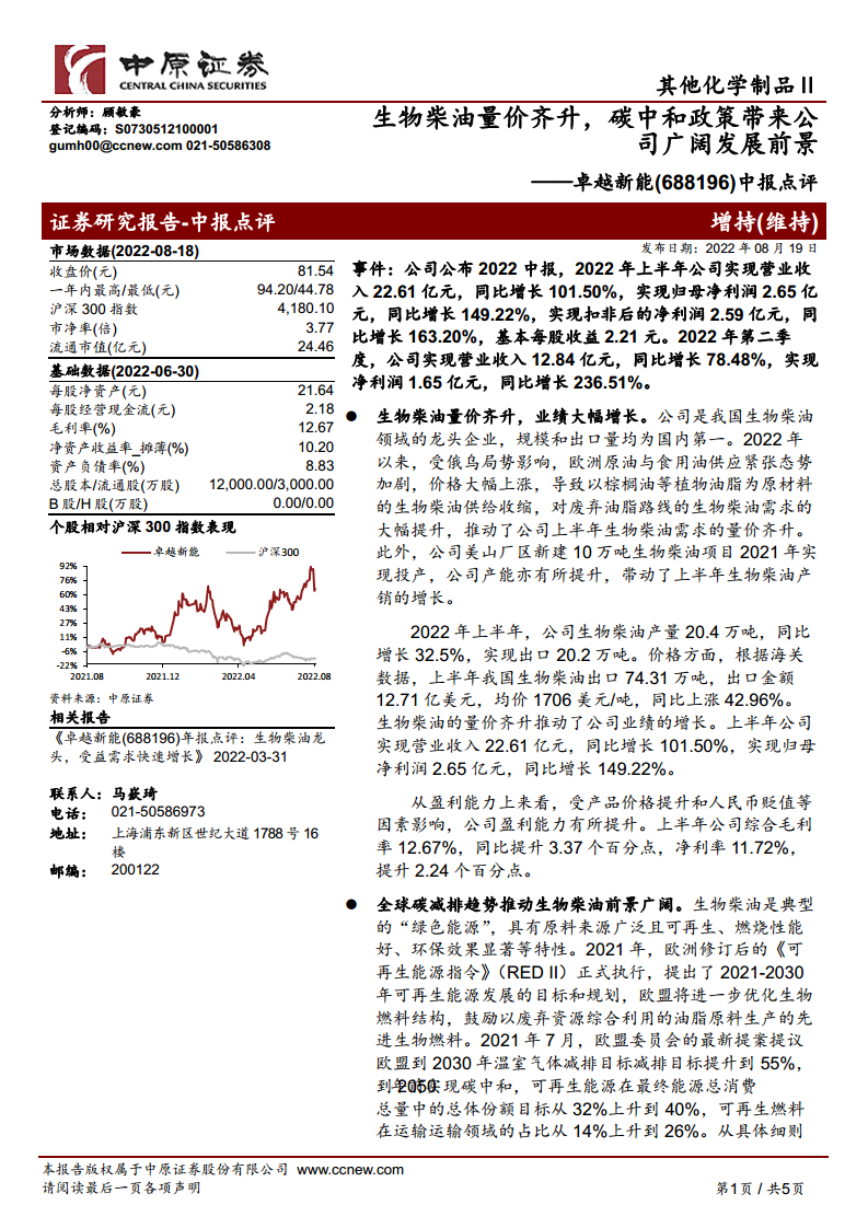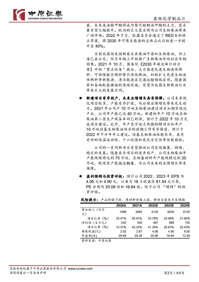中报点评:生物柴油量价齐升,碳中和政策带来公司广阔发展前景