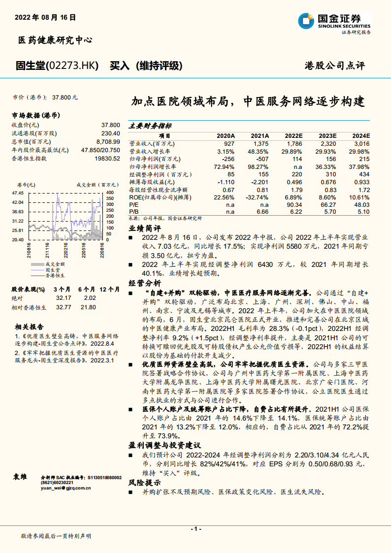 固生堂(02273):加点医院领域布局,中医服务网络逐步构建