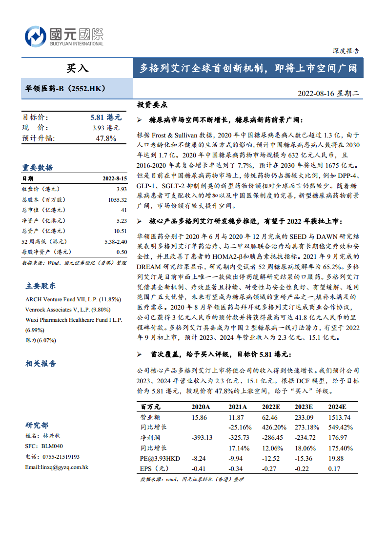 华领医药-B(2552.HK)多格列艾汀全球首创新机制,即将上市空间广阔