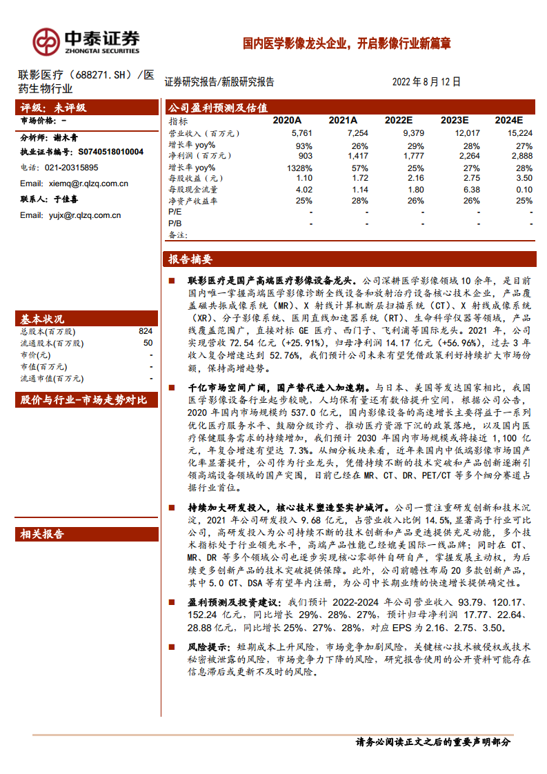 联影医疗(688271):国内医学影像龙头企业,开启影像行业新篇章