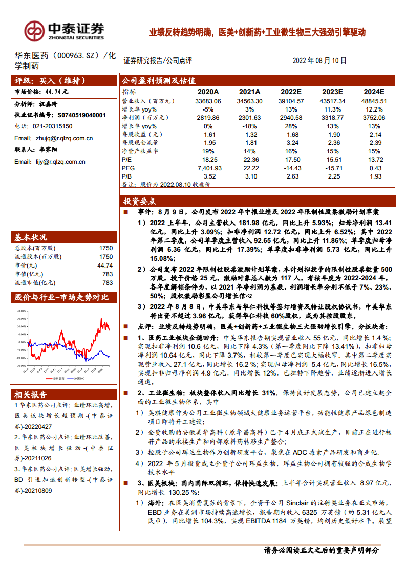 华东医药(000963):业绩反转趋势明确,医美+创新药+工业微生物三大强劲引擎驱动