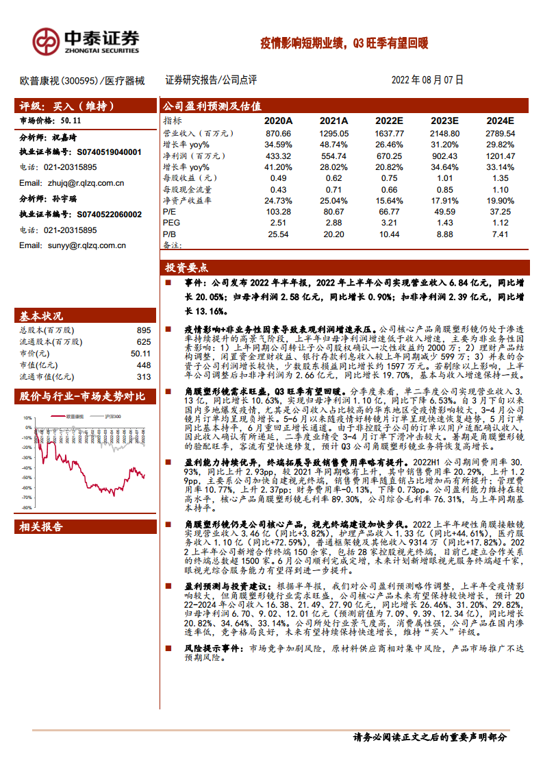 欧普康视(300595):疫情影响短期业绩,Q3旺季有望回暖