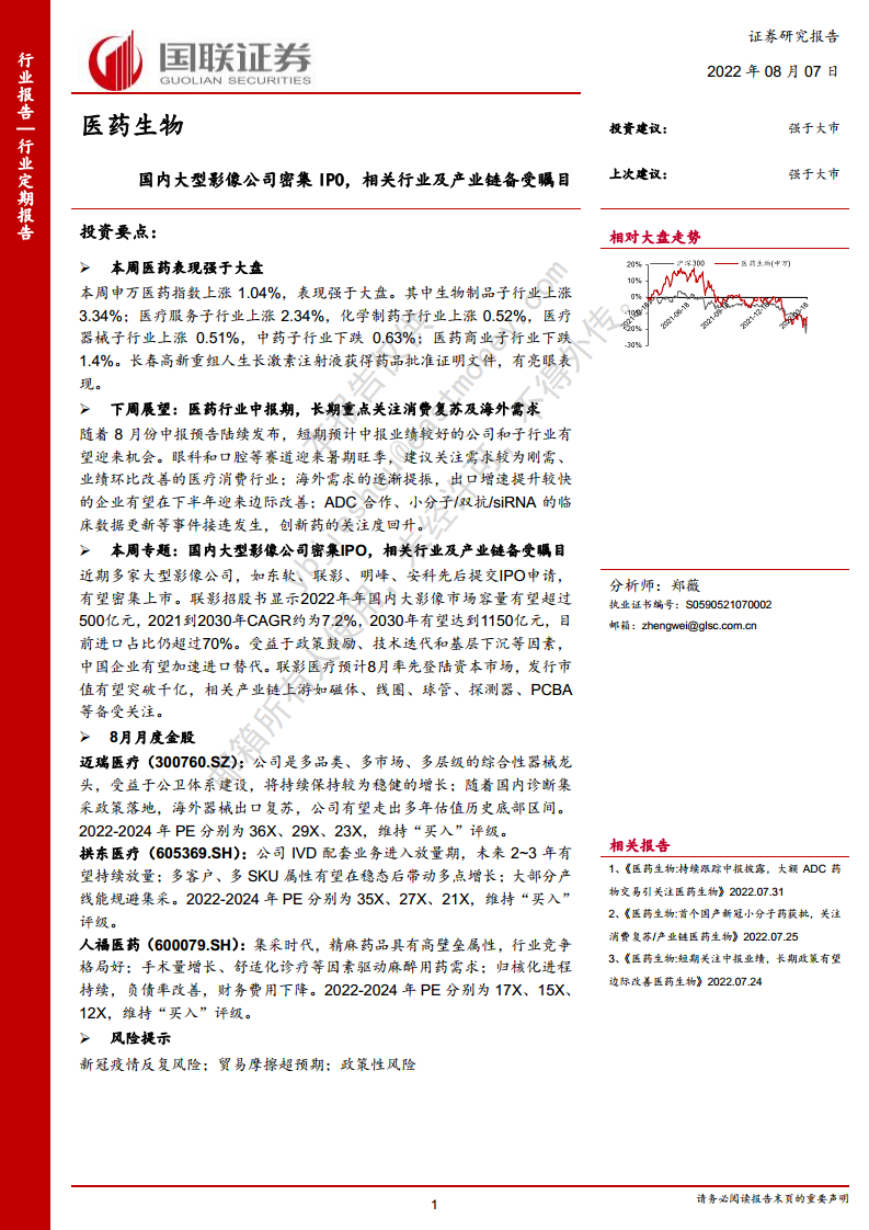 医药生物:国内大型影像公司密集IPO,相关行业及产业链备受瞩目