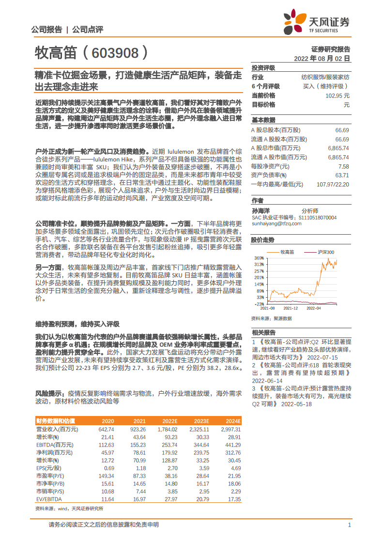 牧高笛(603908):精准卡位掘金场景,打造健康生活产品矩阵,装备走出去理念走进来