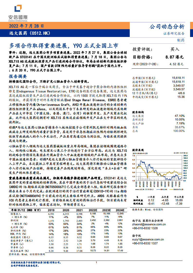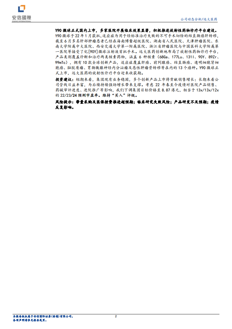 远大医药(00512):多项合作取得重要进展,Y90正式全国上市