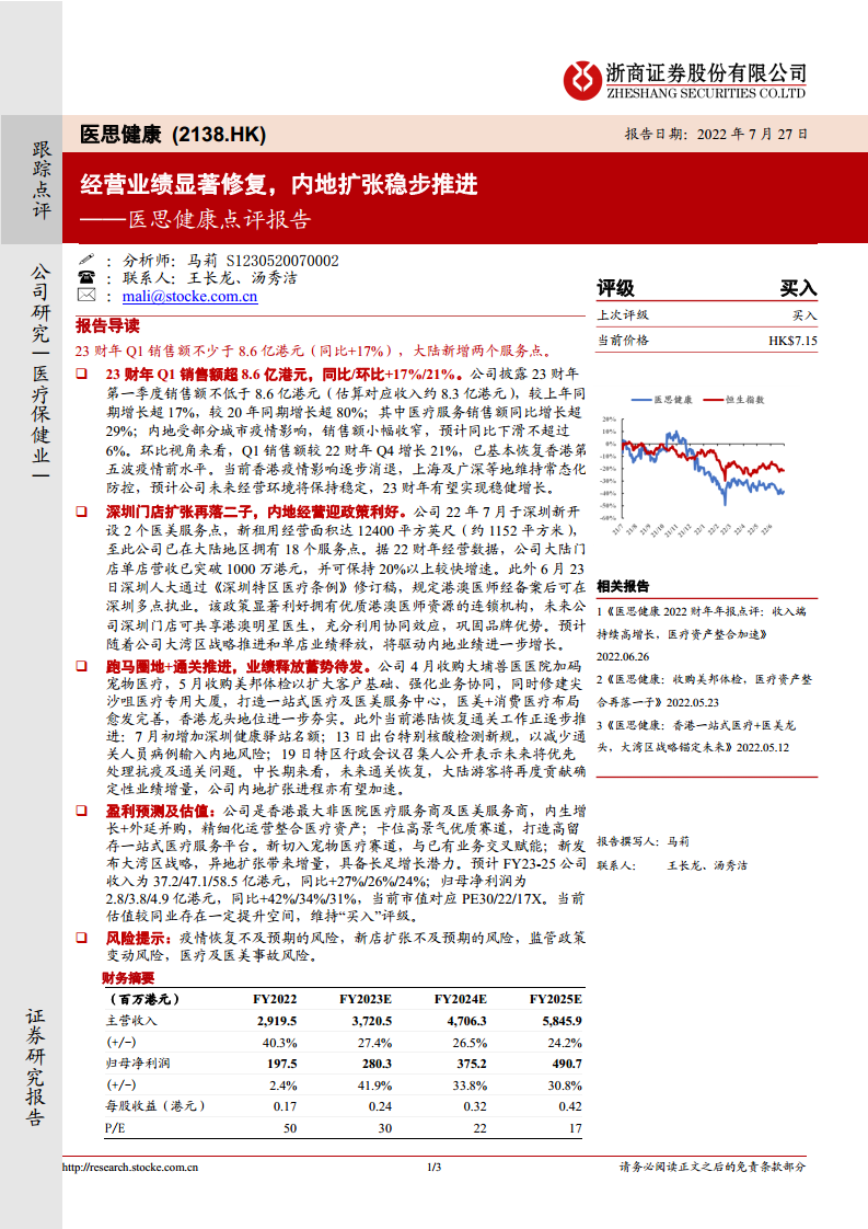 医思健康(02138)点评报告:经营业绩显著修复,内地扩张稳步推进
