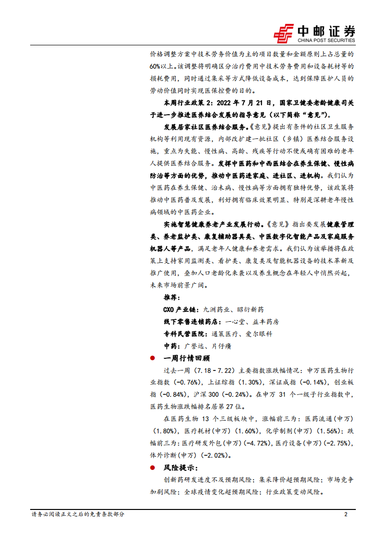 医药生物行业周报:半年报业绩披露喜忧参半,智慧健康养老产业兴起