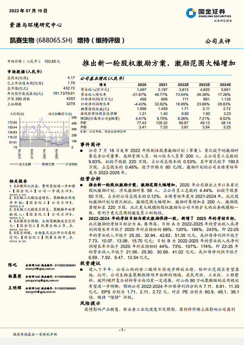 凯赛生物(688065):推出新一轮股权激励方案,激励范围大幅增加