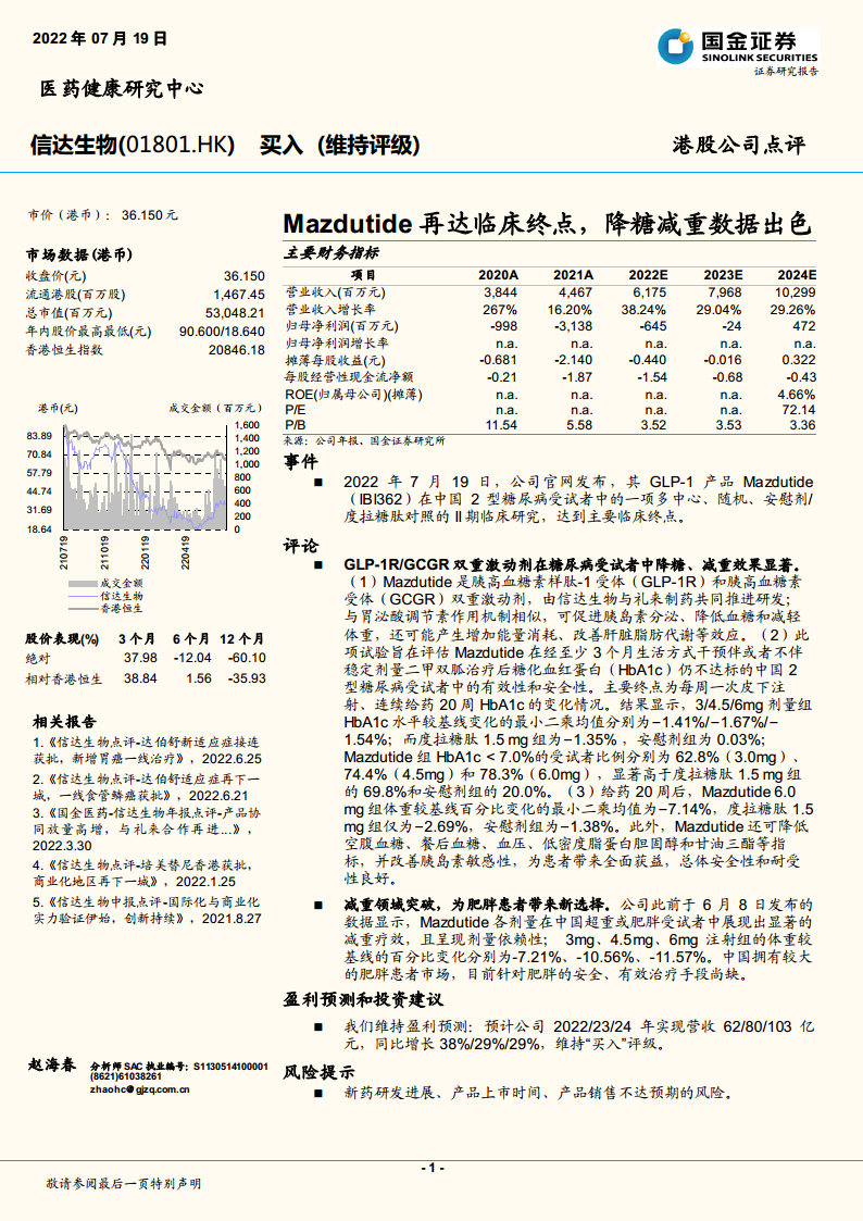 信达生物(01801):Mazdutide再达临床终点,降糖减重数据出色