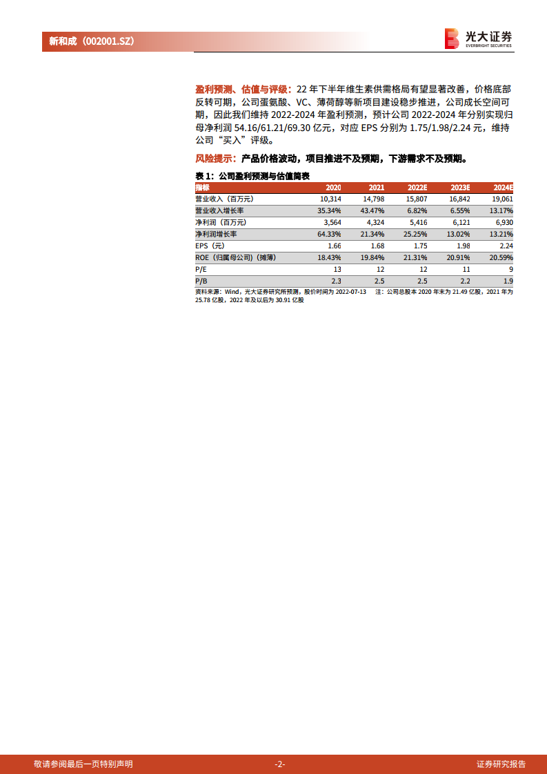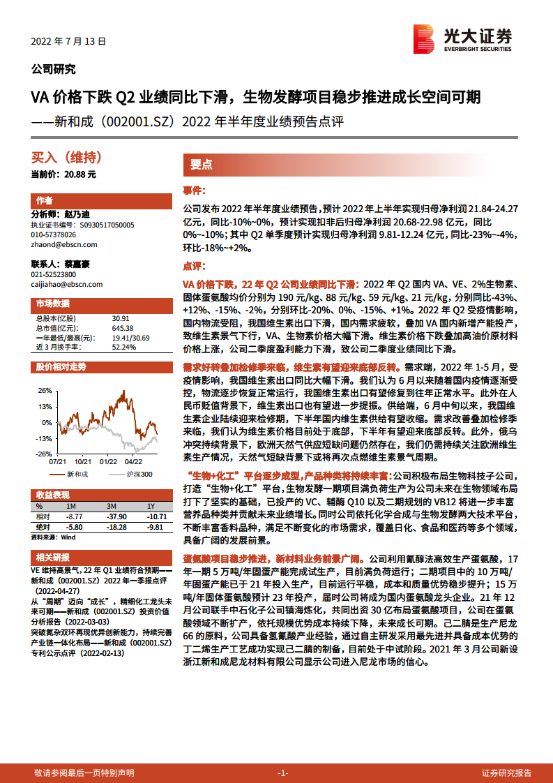 新和成(002001):VA价格下跌Q2业绩同比下滑,生物发酵项目稳步推进成长空间可期