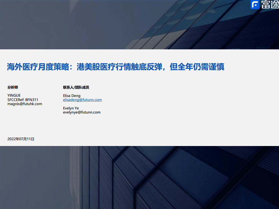 海外医疗月度策略:港美股医疗行情触底反弹,但全年仍需谨慎
