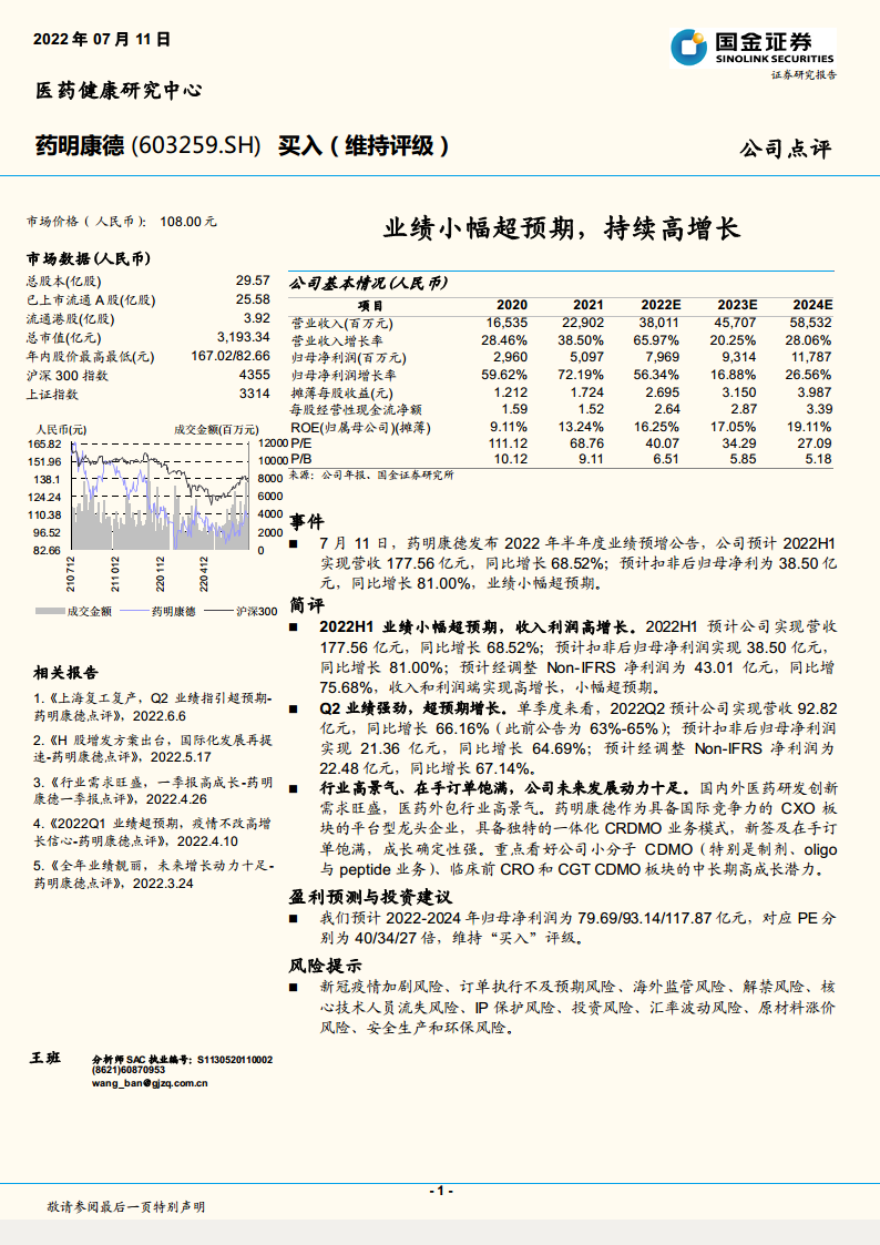 药明康德(603259):业绩小幅超预期,持续高增长