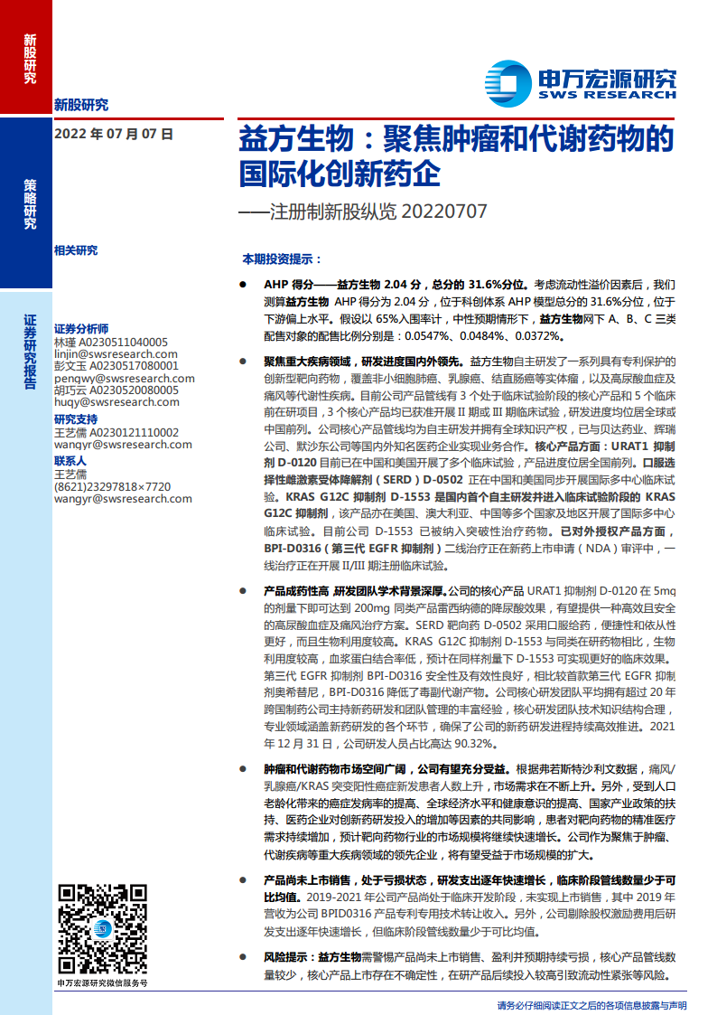 益方生物(688382):聚焦肿瘤和代谢药物的国际化创新药企