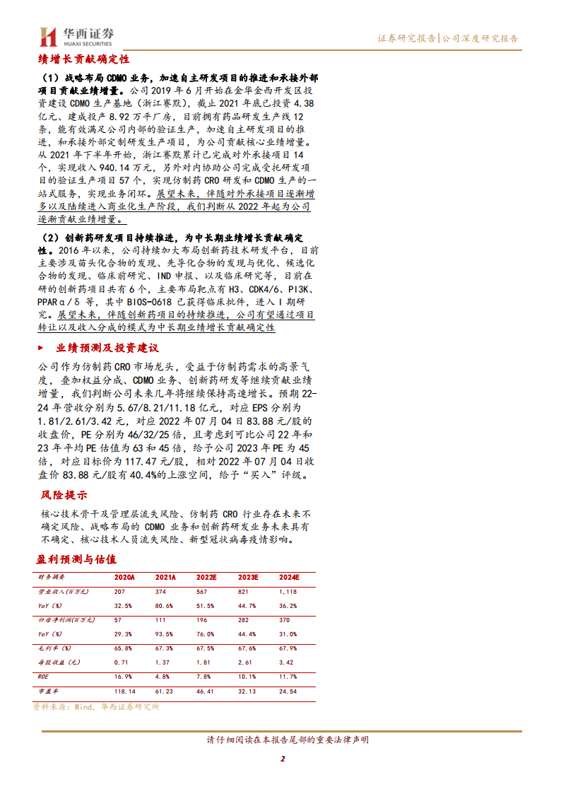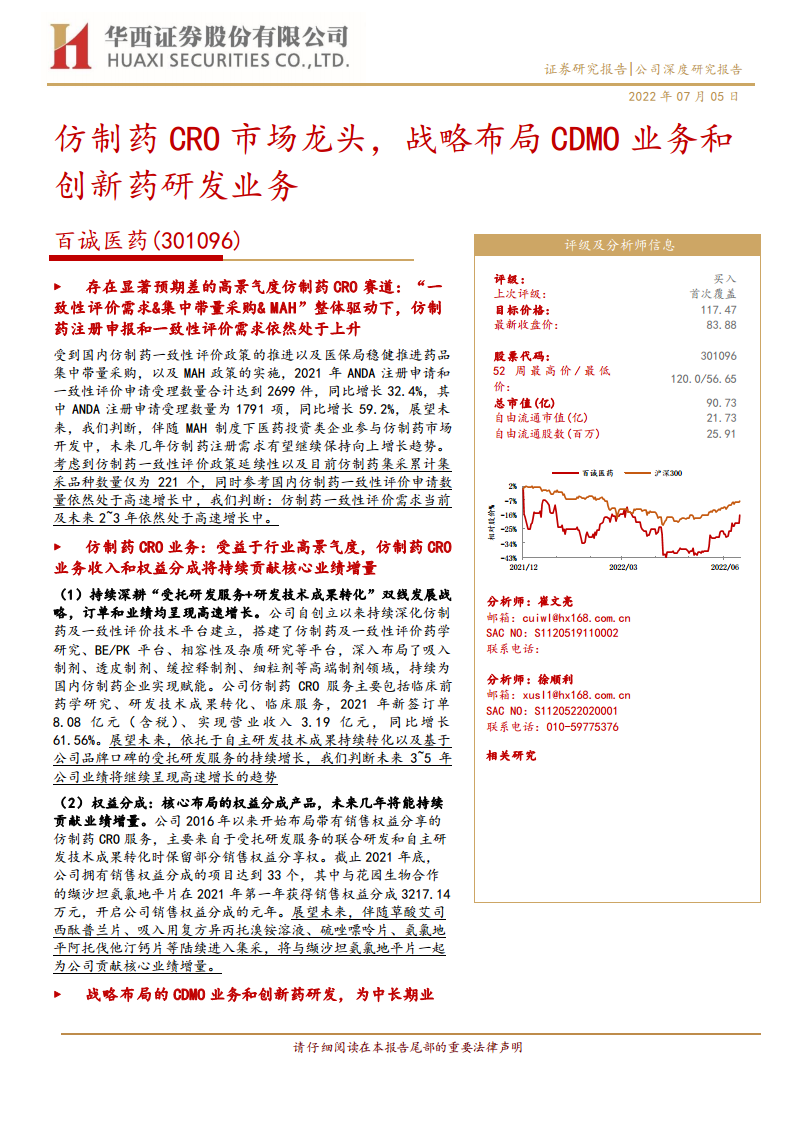 百诚医药(301096):仿制药CRO市场龙头,战略布局CDMO业务和创新药研发业务