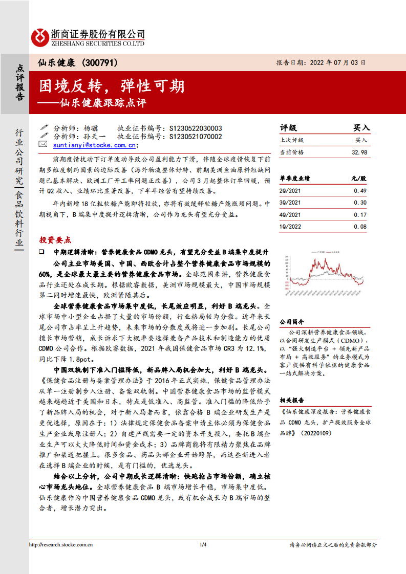 仙乐健康(300791)跟踪点评:困境反转,弹性可期
