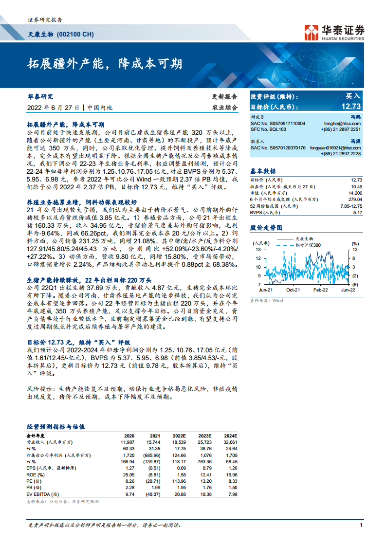 天康生物(002100):拓展疆外产能,降成本可期