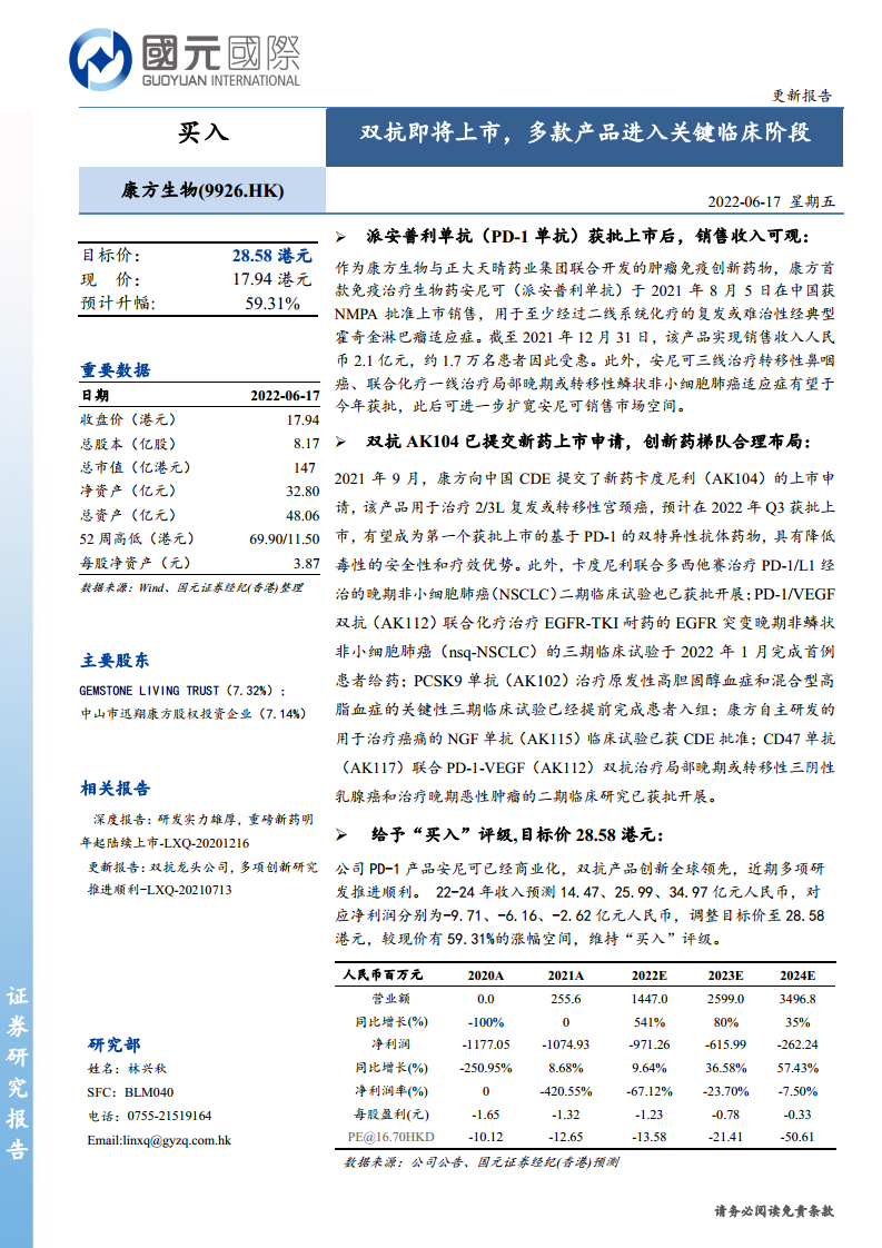 康方生物-B(09926):双抗即将上市,多款产品进入关键临床阶段